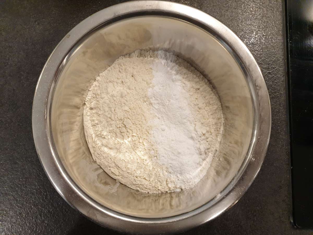- Tamiser ensemble la farine et la levure chimique et les incorporer au mélange précédent en remuant doucement.