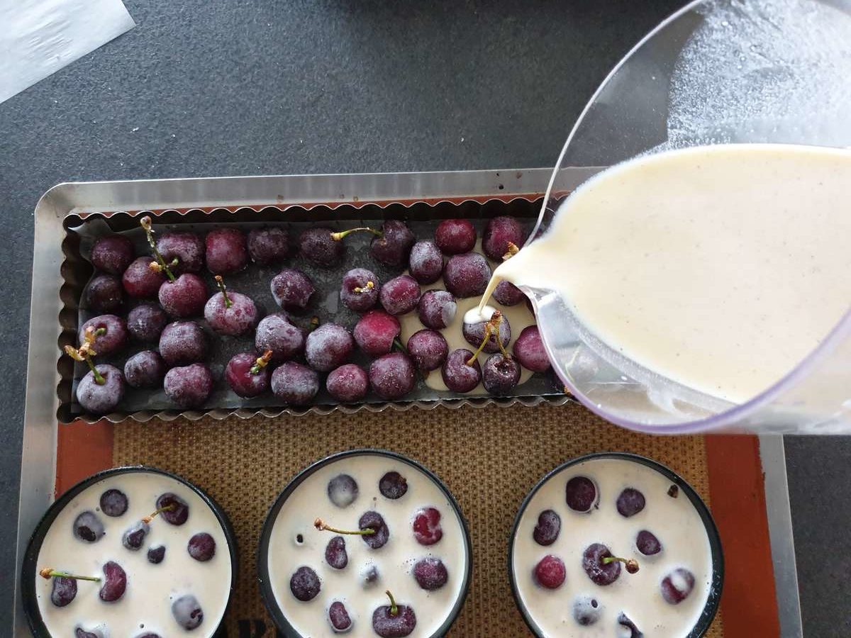- Verser l’appareil à clafoutis.