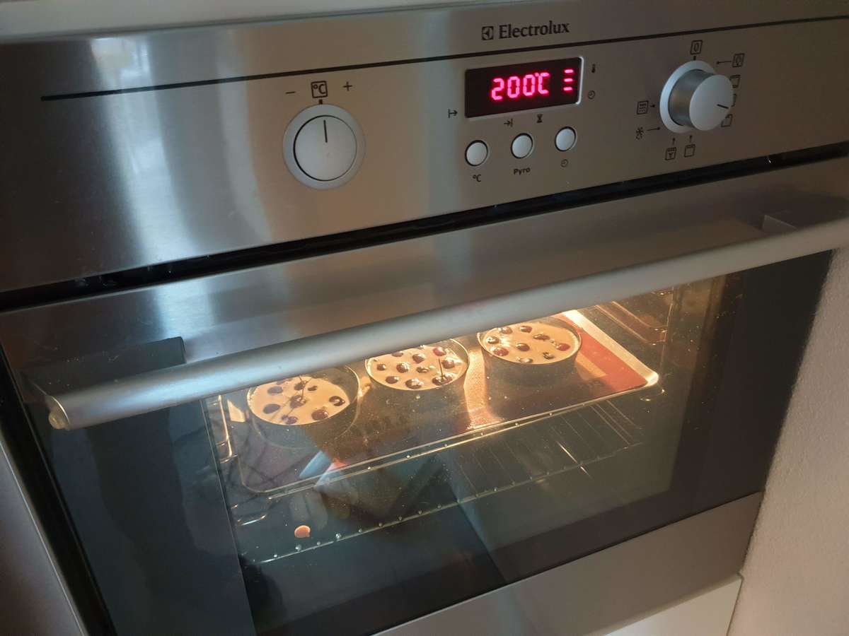 Utilisez la chaleur tournante à 190‑210 °C. Une chaleur trop basse donnera un appareil tremblotant, trop haute brûlera le dessus.
