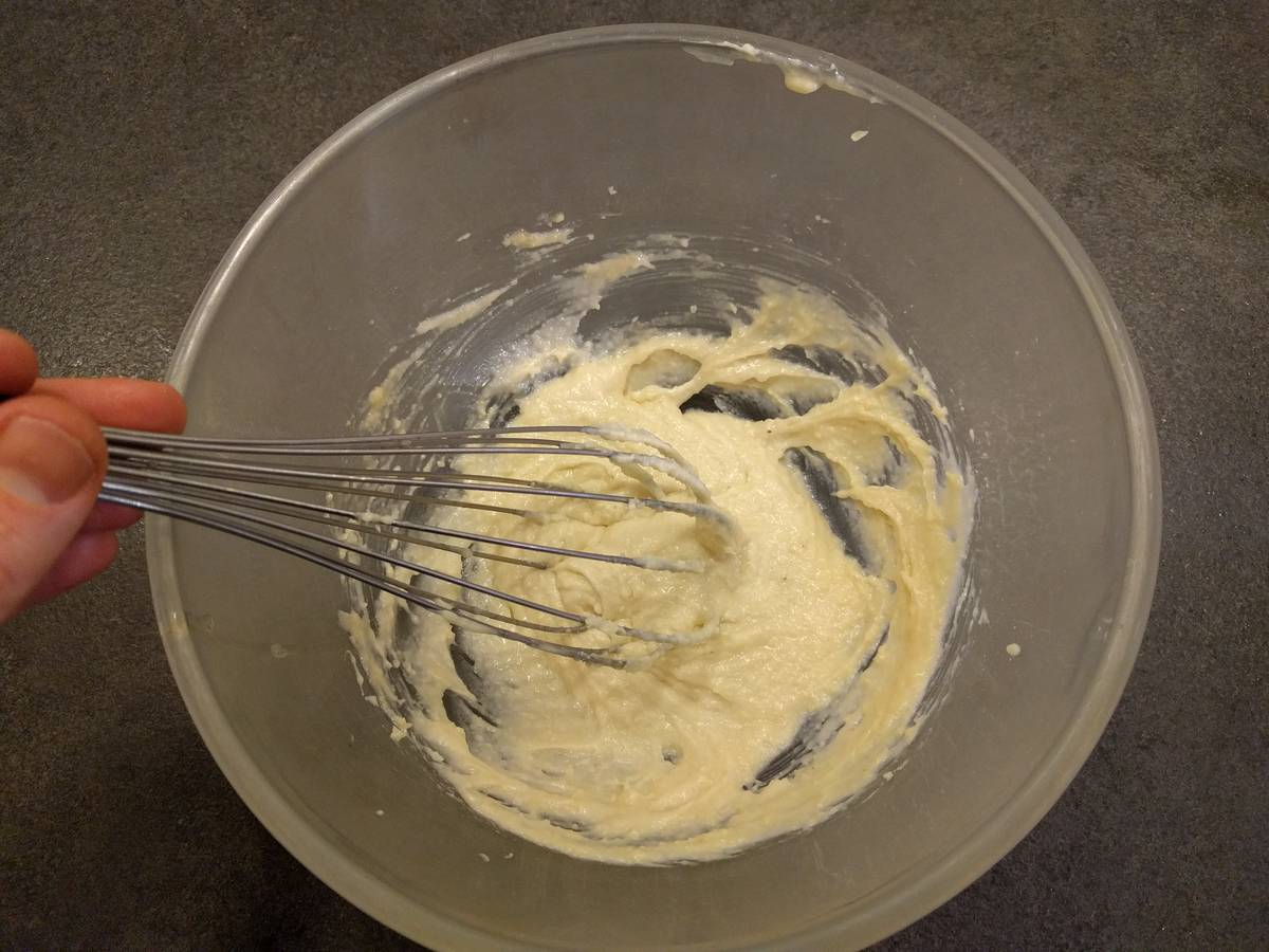 - Débarrasser dans un cul de poule, continuer à mélanger de temps en temps.