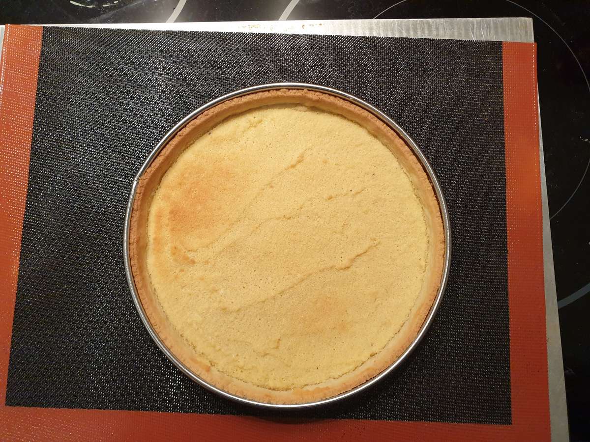 On peut faire les deux, la mettre à mi-cuisson permet de la garer plus moelleuse. Au final, je la mets maintenant avant cuisson, c’est plus simple et je fais attention à ne pas trop cuire le fond de tarte.