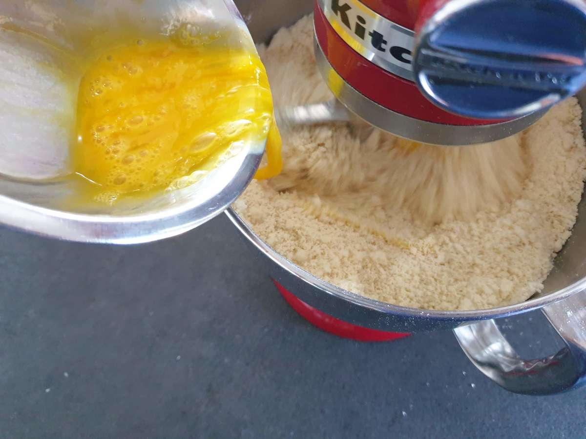- Mélanger doucement la poudre d’amande, le sucre glace et le beurre ramolli.