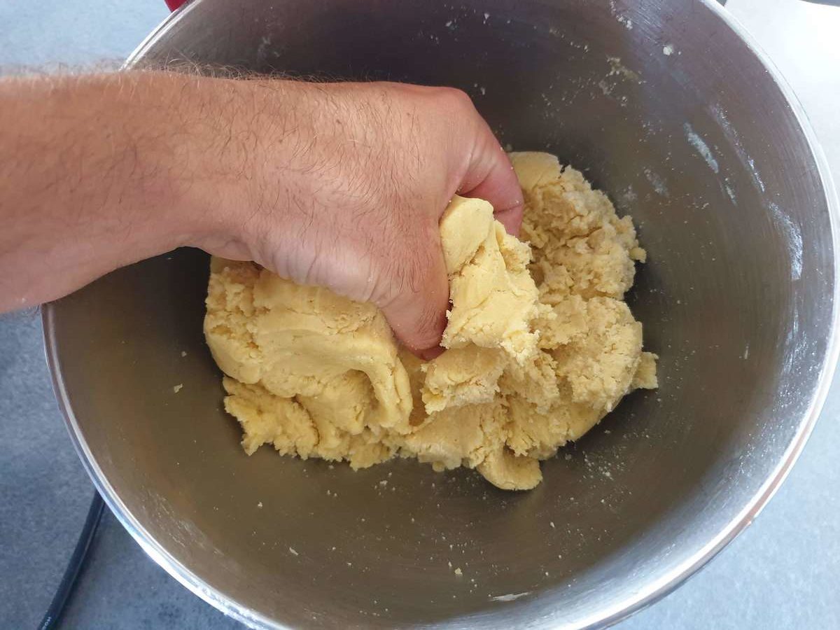 - Une fois une pâte grossière formée, fraisez-la en quelques passes (c’est à dire à l’écraser avec la pomme de votre main afin de vérifier qu’il n’y a pas de grumeaux).