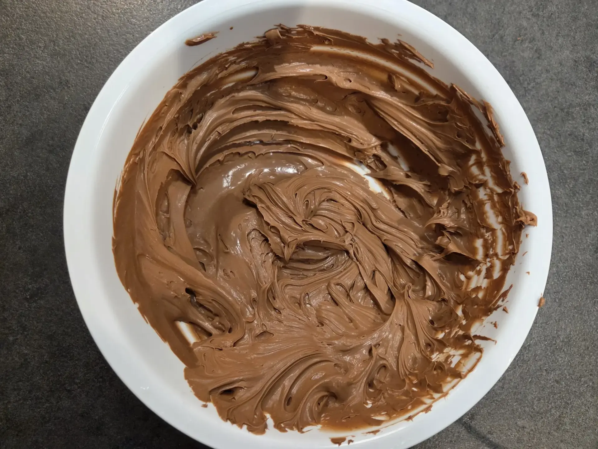 4. Remuez ensuite très doucement au fouet ou à la spatule jusqu’à obtenir une ganache lisse et souple, sans morceaux de chocolat.