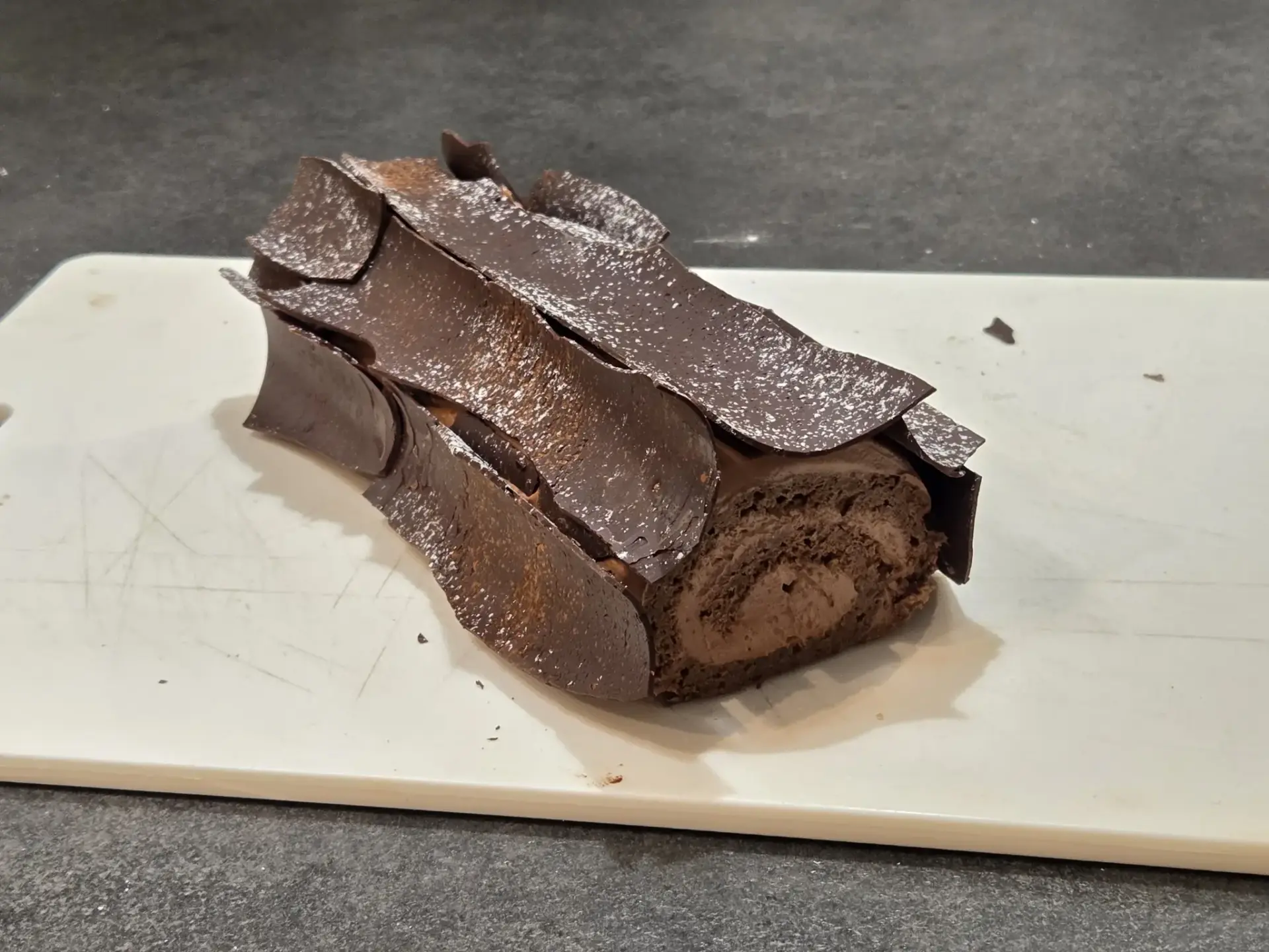 Décor bûche chocolat en “fausse écorce”