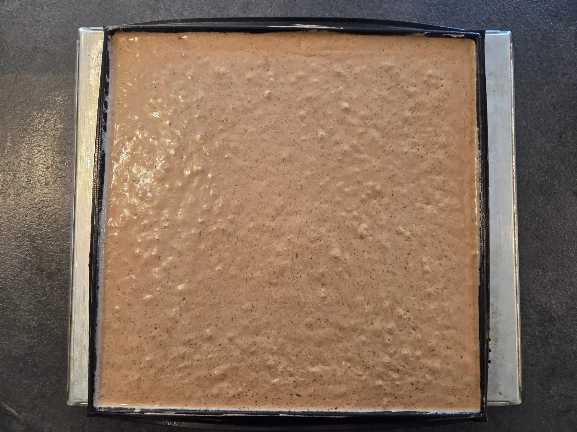 8. Étalez la pâte sur une feuille de cuisson posée sur votre plaque et lissez à la spatule sur une épaisseur de 4 à 5 mm environ pour obtenir un rectangle régulier.