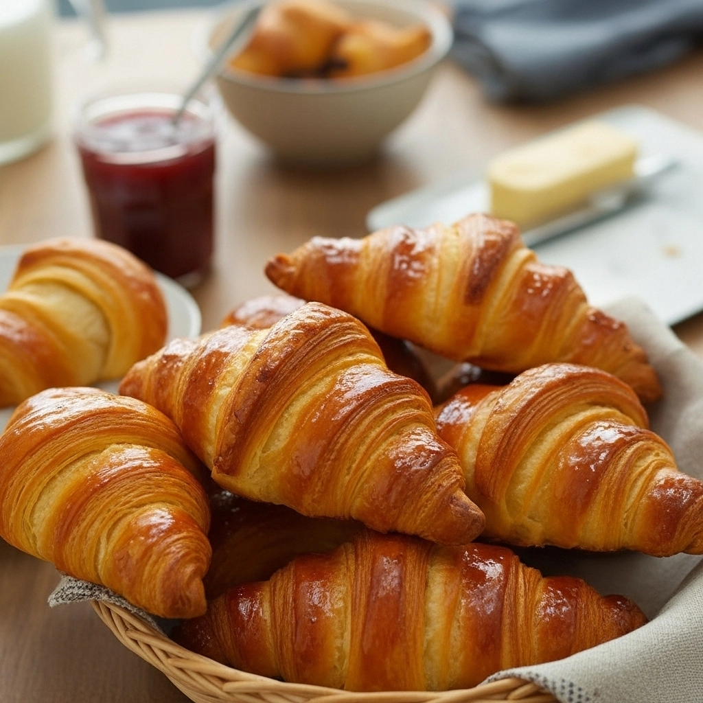 Après beaucoup de lectures, de comparaisons, de recherches, voici que je peux vous présenter fièrement la recette de croissant maison ! Le croissant est certainement la viennoiserie la plus vendu dans les boulangeries françaises. Il existe des variantes des croissants comme le croissant aux amandes, le mini-croissant, le croissant au chocolat ou bien en version salé, le croissant au jambon, le croissant au fromage, au saumon, etc. Le point commun entre toutes ces préparations, c’est la pâte à croissant, aussi nommée pâte à viennoiseries ou pâte levée feuilletée (PLF). Cette recette de croissant reprend une bonne partie des informations vue dans la recette de la pâte levée feuilletée. La pâte levée feuilletée sera réalisée avec du beurre de tourage (dit beurre sec, 84% de M.G.), cela en fait donc des croissants « pur beurre ». Cette recette de croissant nécessite un thermomètre pour avoir un résultat optimum, n’essayez pas sans avoir un moyen de prendre la température des ingrédients et de votre four, c’est essentiel. Si vous n’avez pas de thermomètre, je vous recommande cethermomètre sonde qui sera utile aussi pour la cuisson du sucre (meringue italienne des macarons) par exemple, mais aussi pour la cuisine, cuisson des viandes, etc. Cette recette de croissant peut paraître compliquée (et j’avoue, ce n’est pas la plus simple), mais veuillez respecter les conseils (en particulier les températures) pour avoir le résultat escompté. Ne prenez pas de raccourci, ça serait dommage de gâcher votre temps et de l’argent parce que vous avez ignoré ou bâclé un conseil ou une étape. Comme d’habitude, n’hésitez pas à me poser vos questions ci-dessous et à me partager vos résultats à travers les réseaux sociaux Instagram ou Facebook.